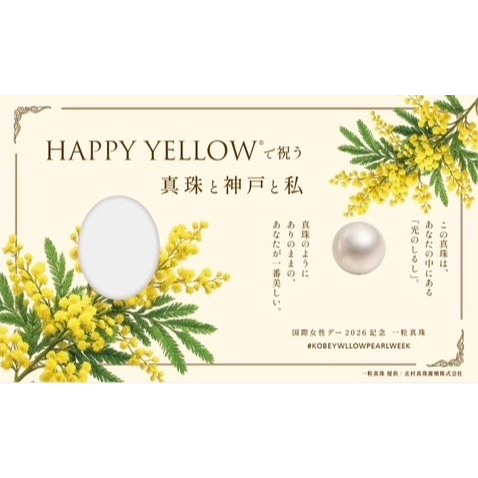 ※3/1〜3/8 イベントにご参加いただいた方へ、「ひと粒の真珠」と「HAPPY GIFT」をお届けします。そしてメイン会場会場 KitanoMediumでは、KOBE YELLOW PEARL WEEKに合わせ様々な企画を仕掛けております。詳しくはイベントページをご確認ください。